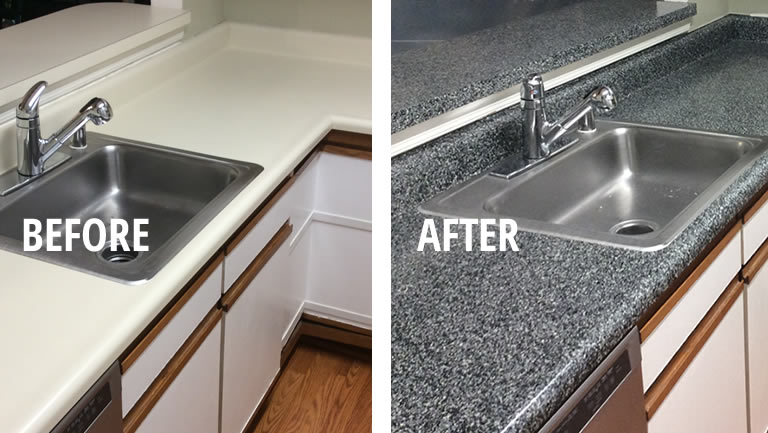 Give your kitchen or bathroom countertops a fresh, modern look without the cost and mess of replacement.
